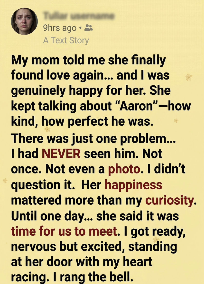 My mom told me she had finally found love again, and I was genuinely happy for her. After everything she had been through, she deserved someone who made her smile again. She talked about him often, always with this soft, glowing happiness in her voice. His name was Aaron. She said he was kind, patient, and everything she had ever needed. I wanted to share in her joy, so I didn’t ask too many questions. But there was one thing that quietly bothered me. I had never seen him. Not once. No photos, no video calls, nothing. Every time I asked, she would laugh it off and say, “You’ll meet him soon.” So I let it go, because her happiness mattered more than my curiosity.