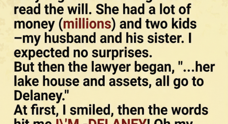 My mother-in-law passed away suddenly, and a few days later, her lawyer called us all in to read the will. She had built a fortune over the years—millions in assets, properties, investments, and a beautiful lake house that had been in the family for decades. Everyone assumed it would go to her two children—my husband and his sister.