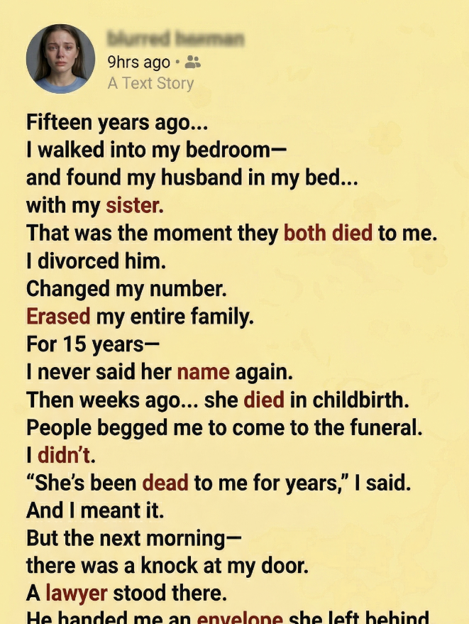 “I’m your sister’s lawyer,” he said gently. “She left something for you.”