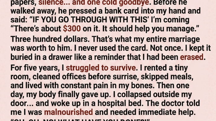 I rented a tiny room in a building that smelled like damp walls and loneliness. I cleaned offices before sunrise. I skipped meals more times than I could count. My body grew weaker, my bones ached constantly, and every night I lay awake wondering how everything had fallen apart so quietly.