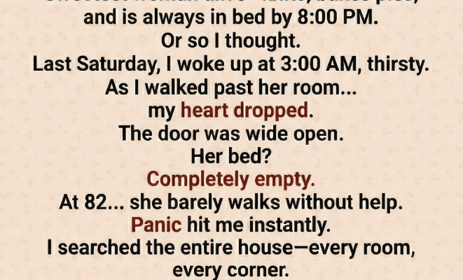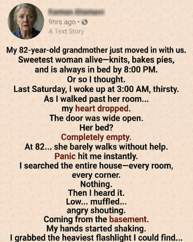My 82-year-old grandmother had just moved in with us. She was the sweetest woman you could imagine. She knitted blankets, baked pies that filled the house with warmth, and was always in bed by 8:00 PM. Quiet. Gentle. Harmless. That’s what I believed.
