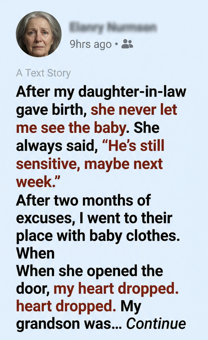 After my daughter-in-law gave birth, she never let me see the baby. At first, I didn’t think much of it. New mothers get overwhelmed, and I wanted to respect her space. But every time I asked to visit, there was always a reason.