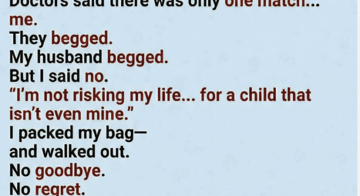 When I was 34, I made a decision I told myself I could live with. My 10-year-old stepson was dying. The doctors had been clear—his condition had progressed faster than anyone expected, and a bone marrow transplant was his only real chance. They ran tests on family members, searching for a match. One by one, the results came back negative. Until mine.