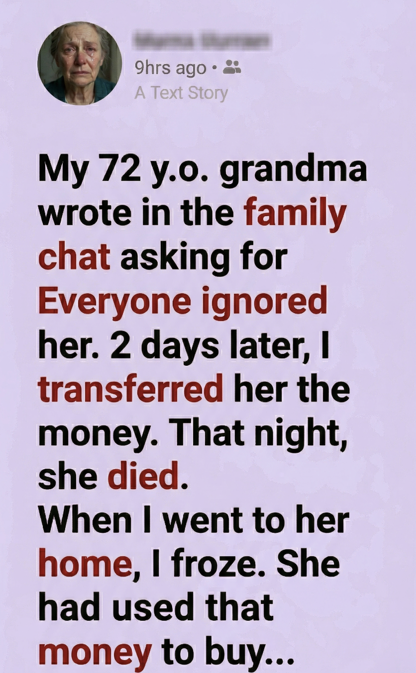 My 72-year-old grandma wrote in the family group chat asking for money. It wasn’t a big amount, just enough that anyone in that chat could have sent it without thinking twice. She didn’t beg. She didn’t explain much. Just a simple message, polite as always, like she didn’t want to bother anyone. I saw the message come through. Then I watched as it was read… and ignored. One by one, everyone stayed silent. No replies. No questions. No help.