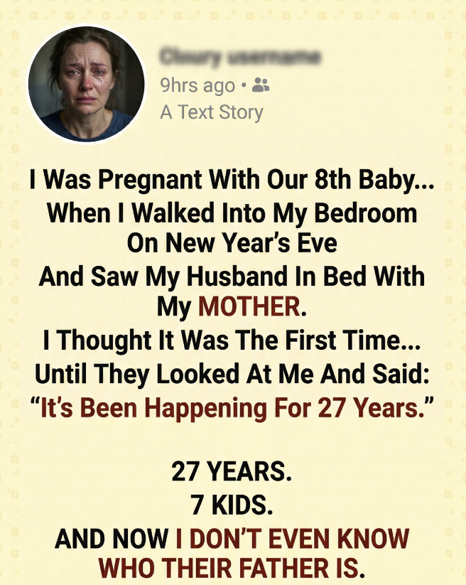 My husband and I had been married for 27 years. We had built what I thought was a beautiful life together—seven children, a home full of memories, and even after all those years, we still went on dates, still laughed, still touched each other like we were in love. And now, I was pregnant again with our eighth child. I truly believed we were one of those rare couples who made it work. On New Year’s Eve, while everyone else was celebrating, I went upstairs to our bedroom to grab something.
