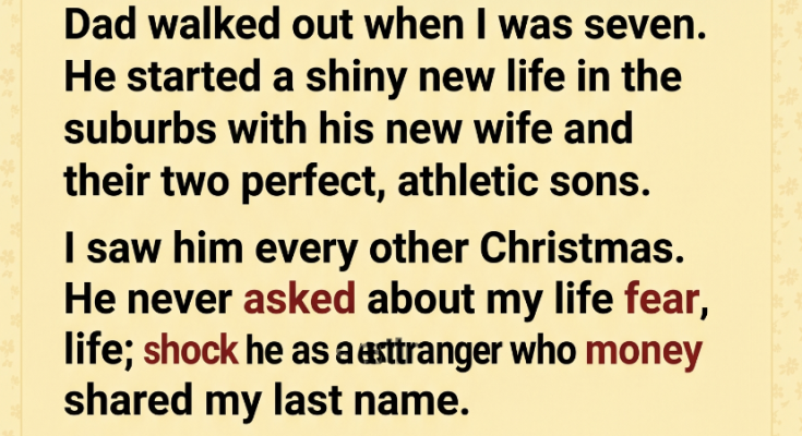 Dad walked out when I was seven. One day he was there, half-watching cartoons with me on the couch, promising we’d go to the park that weekend. The next, his closet was empty and my mom was sitting at the kitchen table trying not to cry loud enough for me to hear.