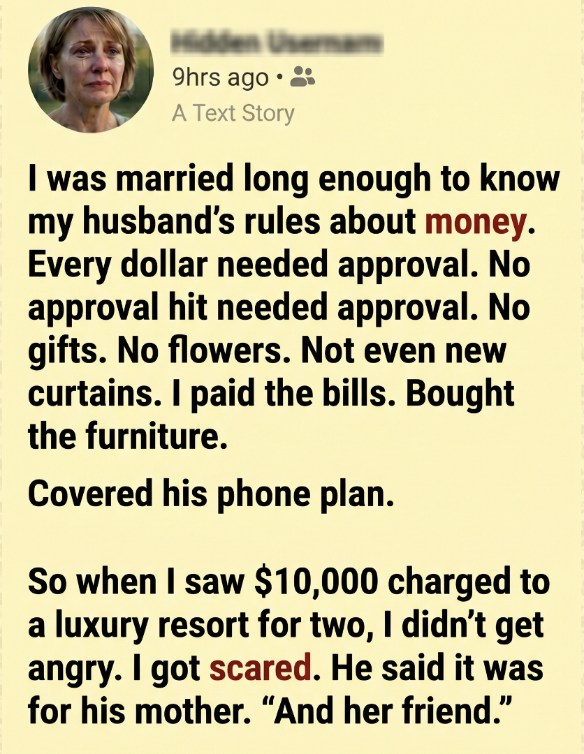 He Controlled Every Dollar I Spent—Then I Found a $10,000 Resort Charge… and the Photo That Changed Everything
