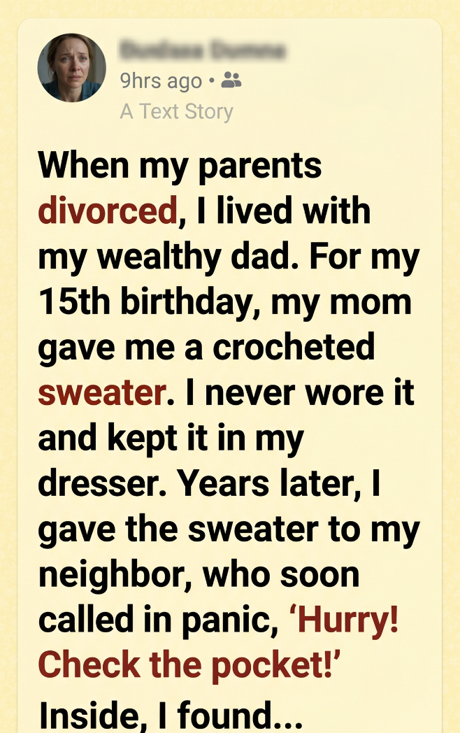Eventually, I moved into a small house in a quiet neighborhood. One day, while cleaning out old drawers, I found the sweater again.
