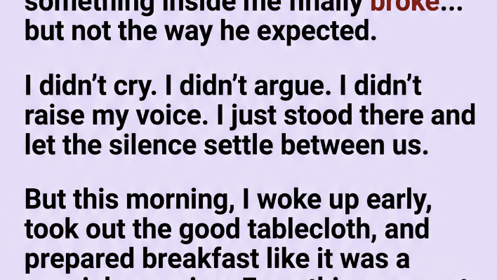 So before the sun came up, I got out of bed and went into the kitchen. I took out the good tablecloth, the one I hadn’t used in years. I cooked his favorite breakfast, eggs exactly how he liked them, toast not too crispy, everything just right. I set the table carefully, almost peacefully, like I was preparing for something important.