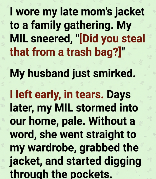 My Mother-in-Law Mocked My Late Mother’s Jacket—Then Showed Up at My House Days Later