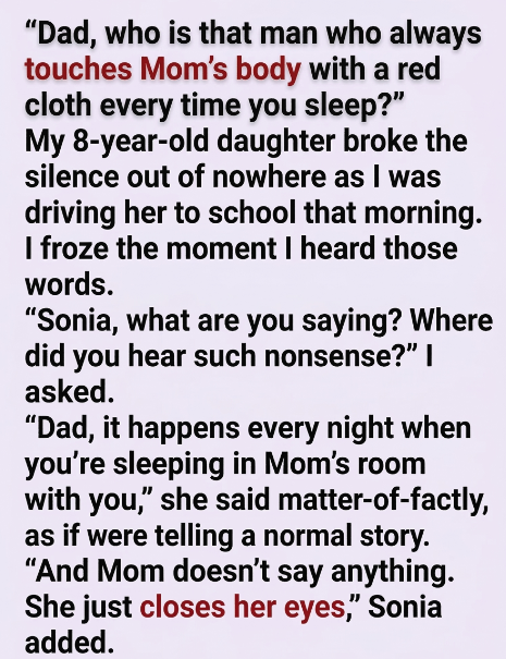 I looked at the red cloth on the floor, then at my wife, who was now trembling. The betrayal I had felt earlier evaporated, replaced by a crushing wave of guilt and heartbreak. Sonia hadn’t seen a lover; she had seen her mother fighting for her life in the silence of the night.