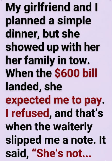 Nothing extravagant. Just a quiet Friday night at a mid-range restaurant downtown. We’d both had long weeks, and I thought it would be a nice chance to unwind, talk, and maybe discuss the next step in our relationship. We’d been together almost a year. I was starting to think about the future.